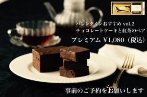 チョコレートスポンジをオレンジの洋酒につけたチョコレートケーキとアールグレイの紅茶のペア商品
