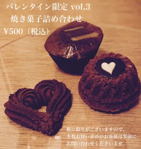 当店のチョコレートの焼菓子をハート型に焼いたり、ホワイトチョコでハートを足した焼菓子のアソート